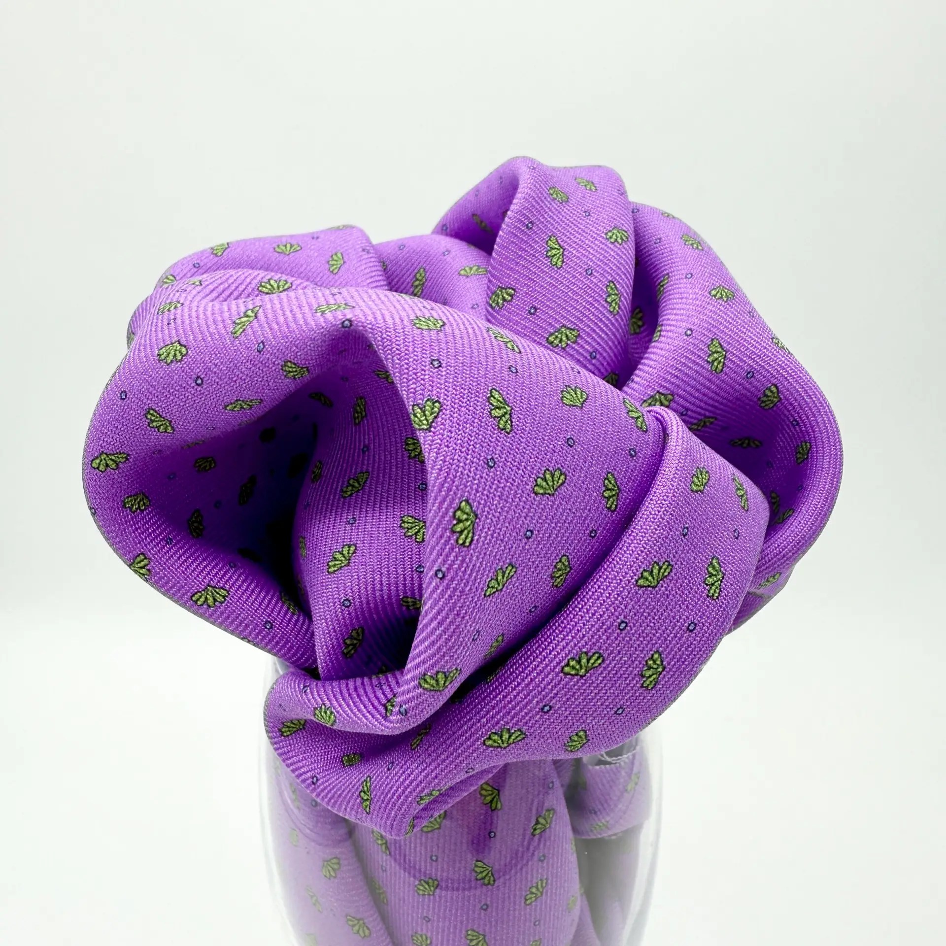 100% Hand Rolled Silk Pocket Square Made To Measure – Print Twill – Violet – Geo Pattern – Hand Made In Italy