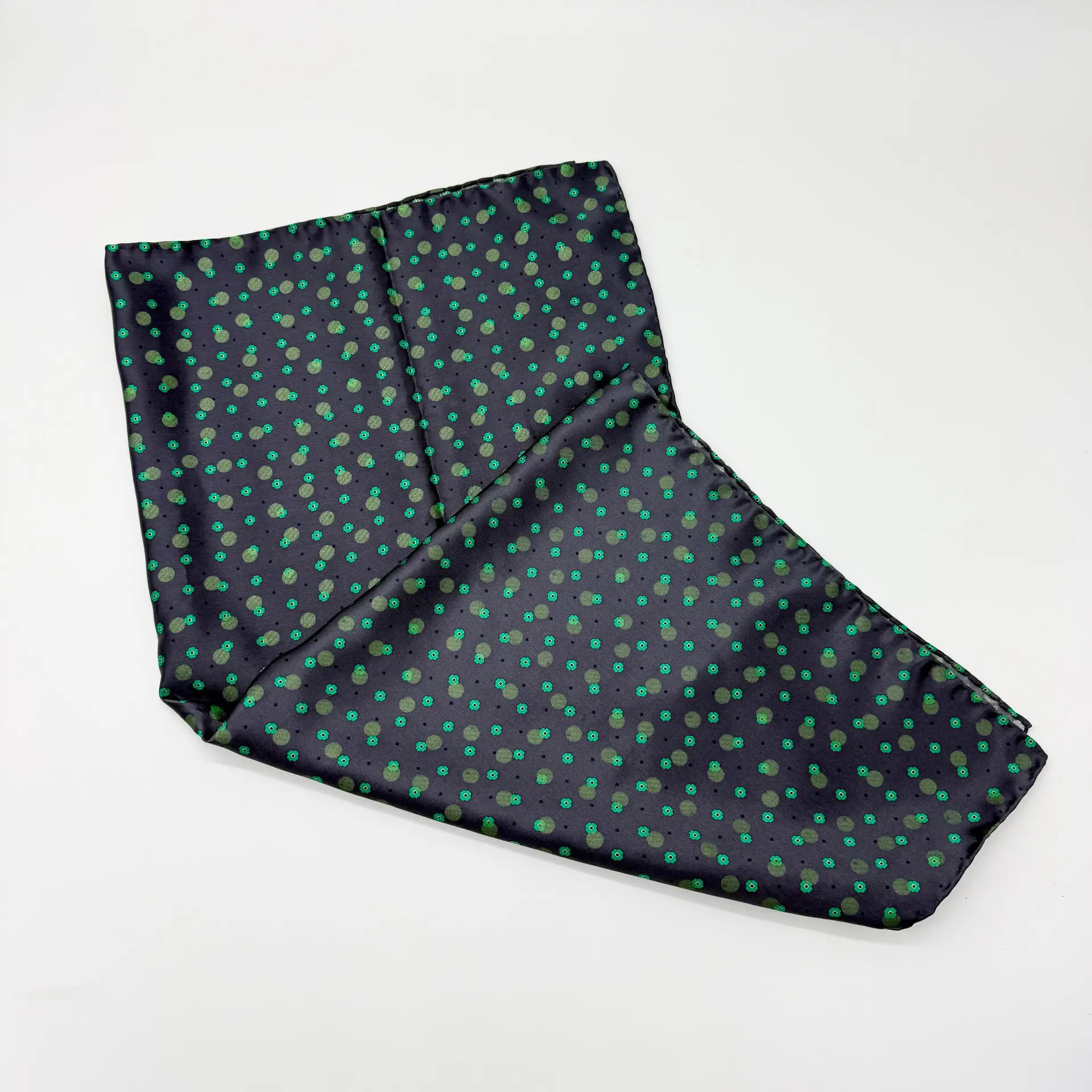 100% Silk Hand Rolled Foulard Ready To Wear – Print Satin Silk – Green – Crazy Pattern – Hand Made In Italy