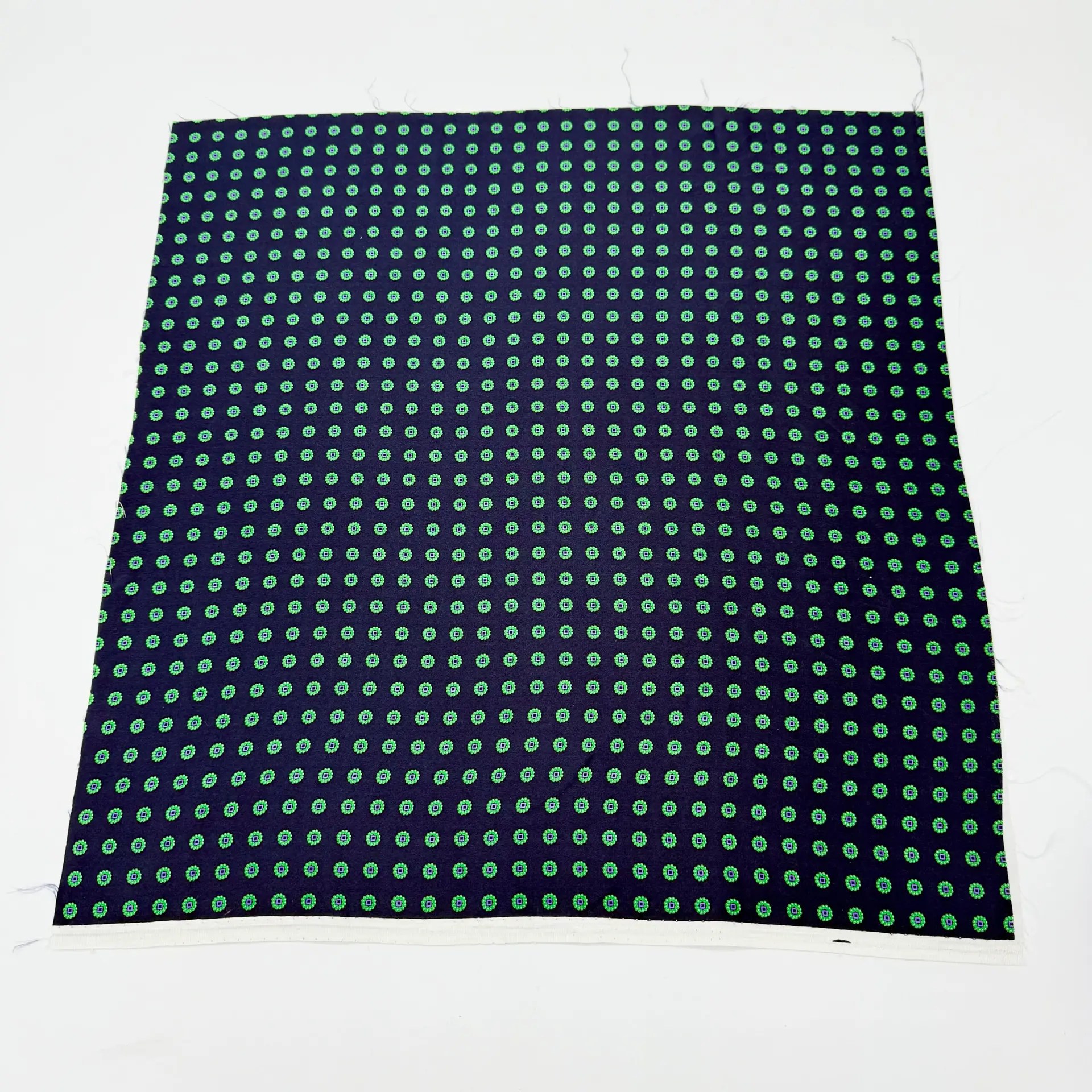 100% Hand Rolled Silk Pocket Square Made To Measure – Print Satin – Green – Geo Pattern – Hand Made In Italy