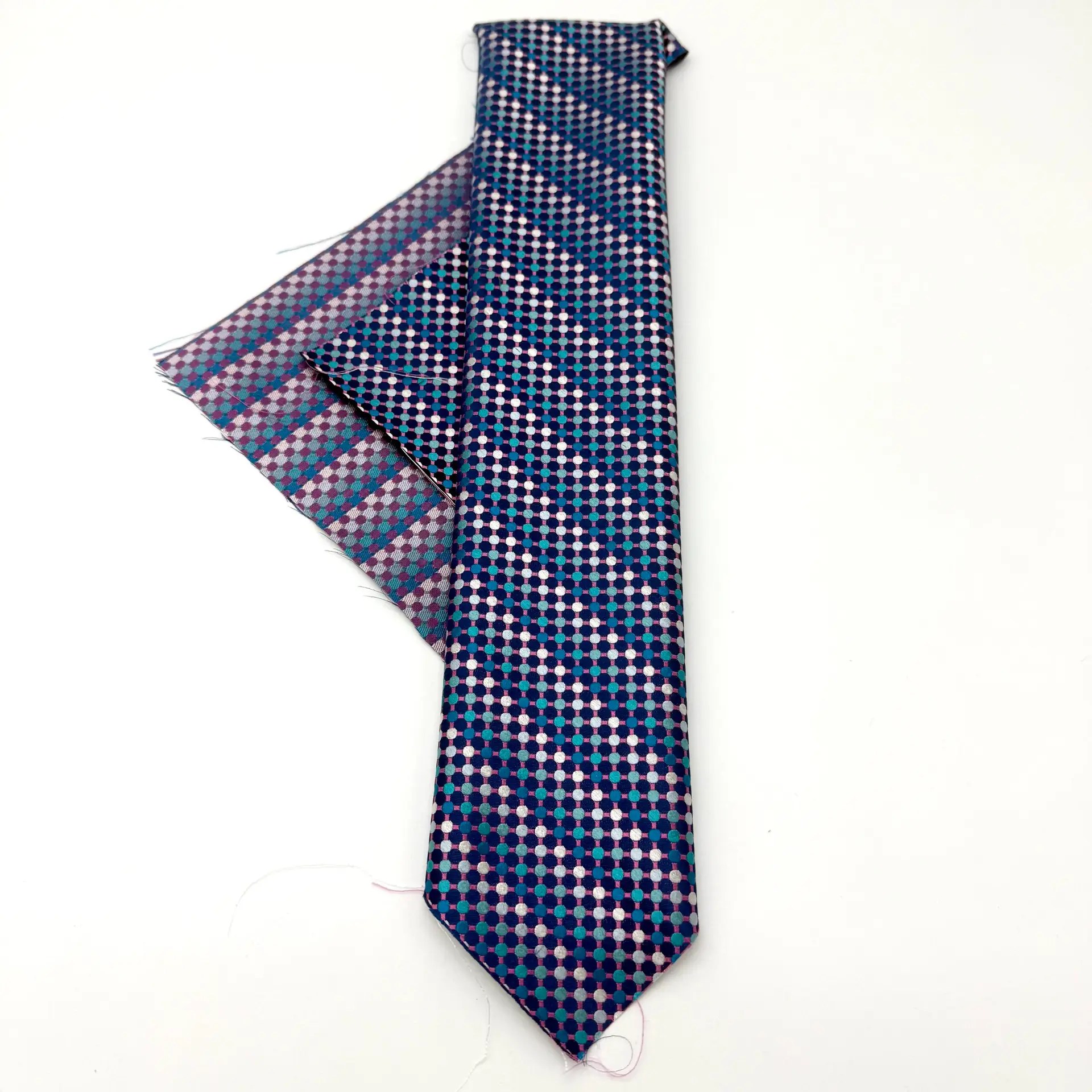 100% Silk Tie Made To Measure – Woven Silk – Blue Pink – Micro Pattern – Hand Made In Italy