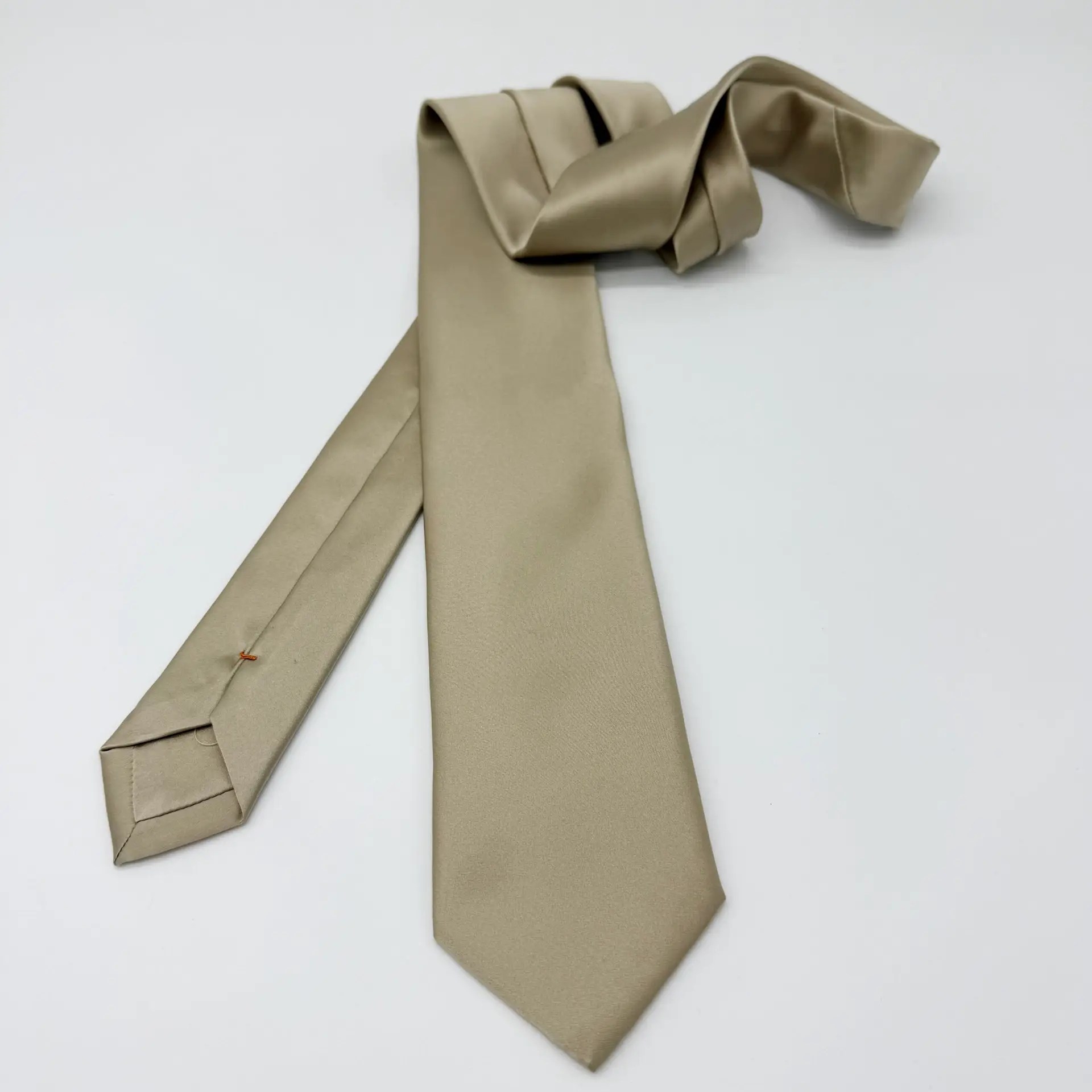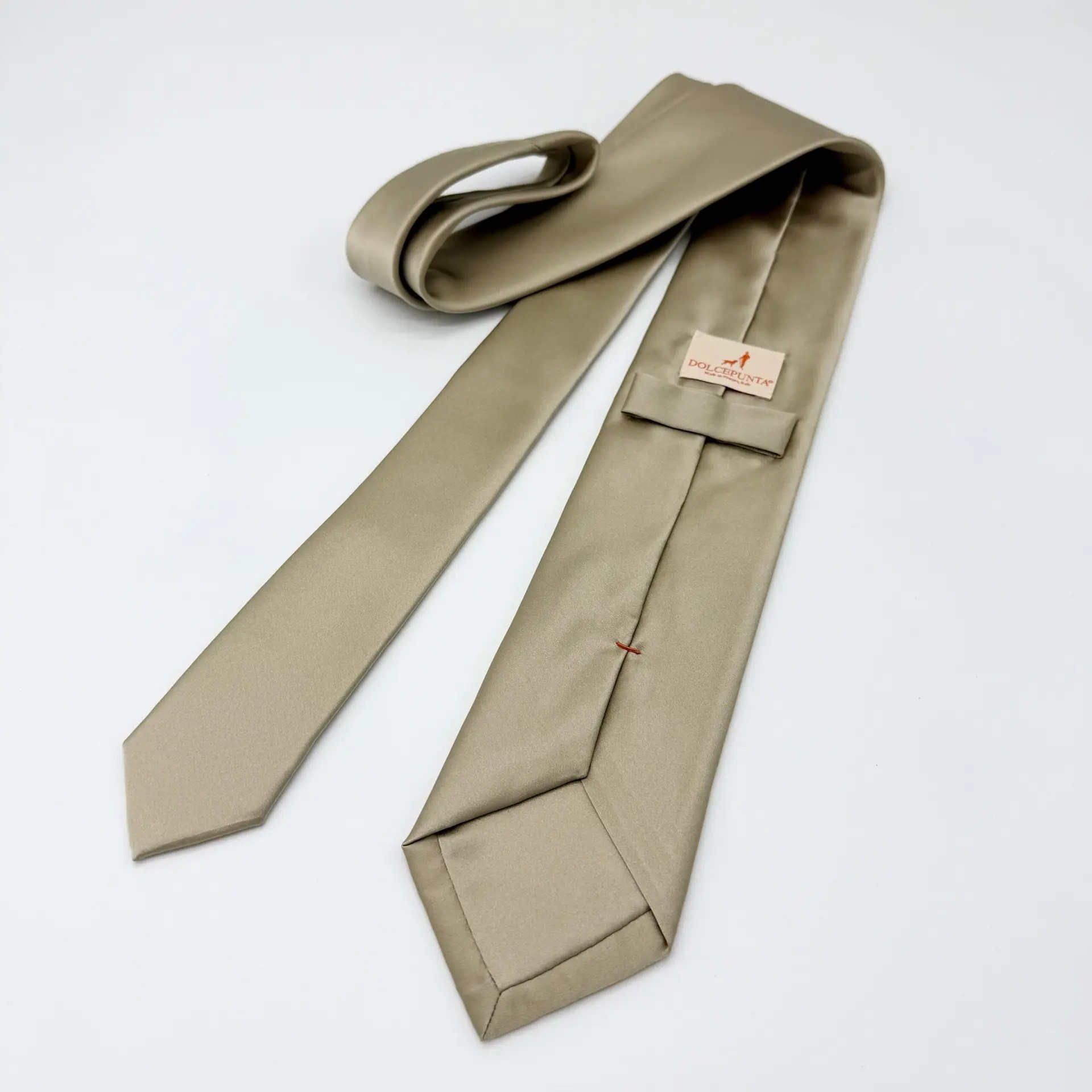 100% Silk Tie Ready To Wear – Print Satin – Taupe – Solid Pattern – Hand Made In Italy