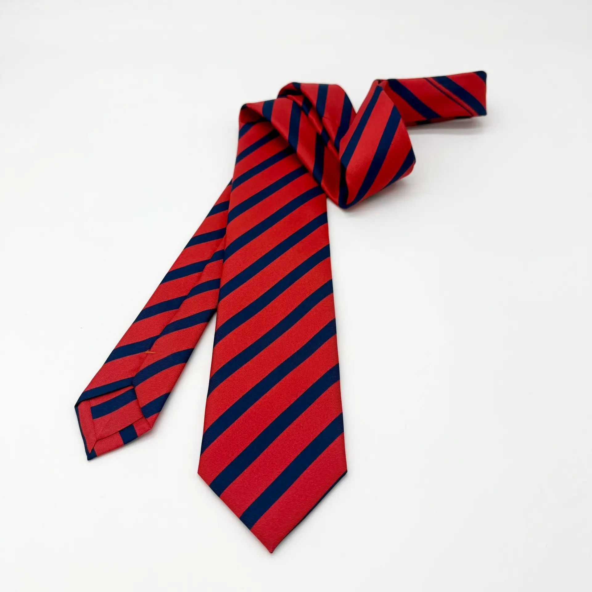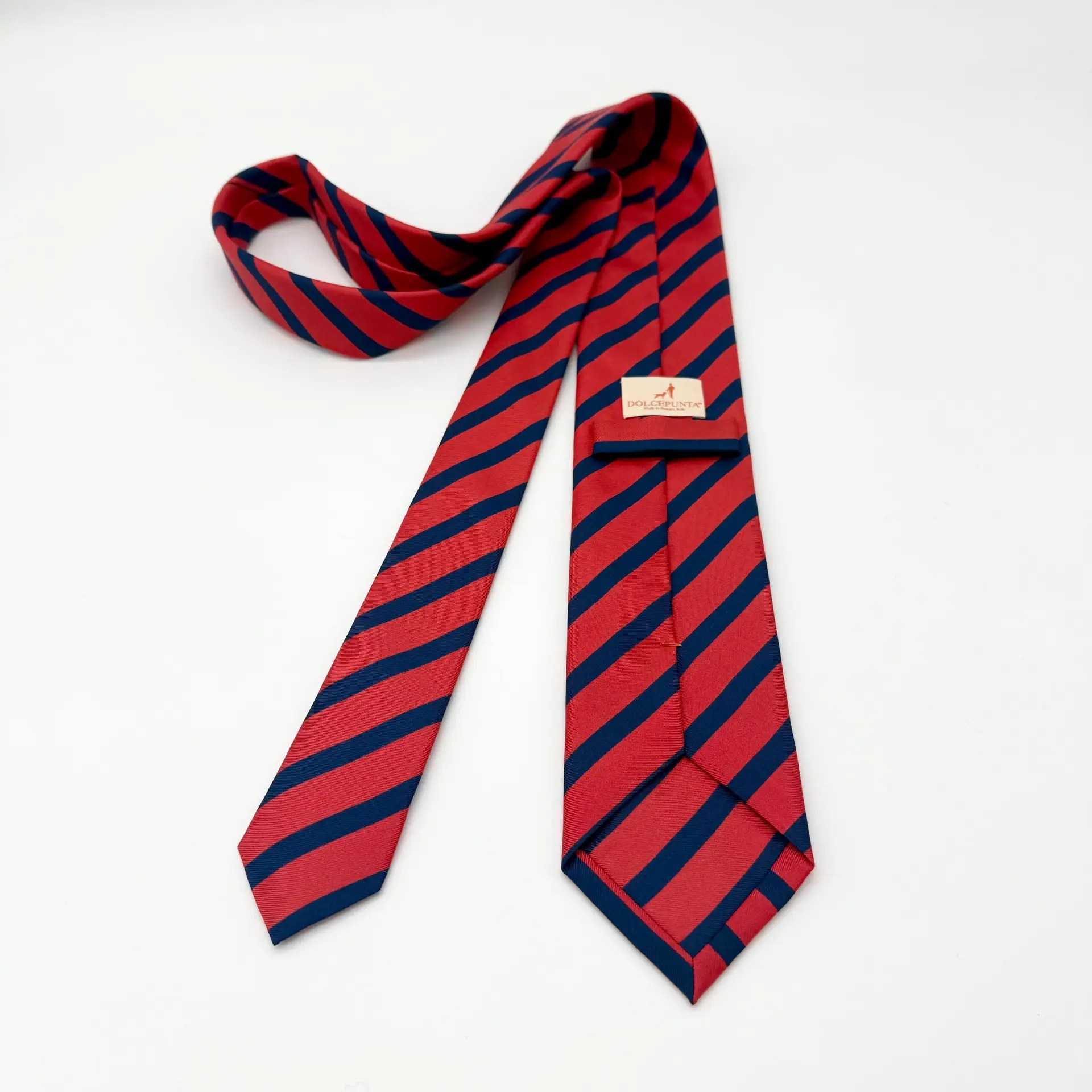 100% Silk Tie Ready To Wear – Print Twill – Red – Stripe Pattern – Hand Made In Italy