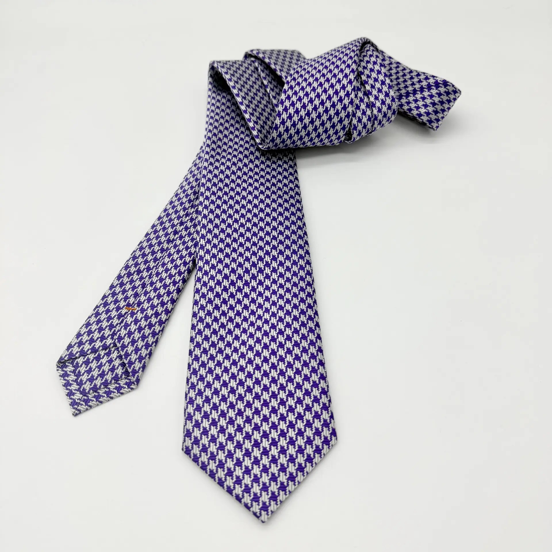 C117-4 – 100% Silk Tie Ready To Wear – Woven Silk – Violet White – Geo Pattern – Hand Made In Italy
